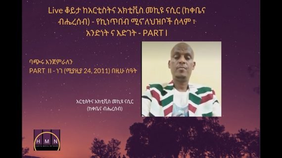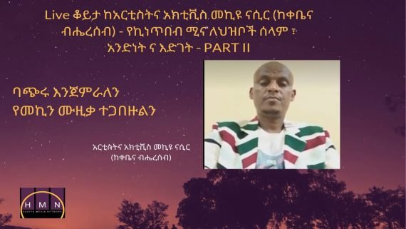 HMN Live Interview Live ቆይታ ከአርቲስትና አክቲቪስ መኪዩ ናሲር (ከቀቤና ብሔረሰብ) – የኪነጥበብ ሚና ለህዝቦች ሰላም ፣ አንድነት ና እድገት – PART II